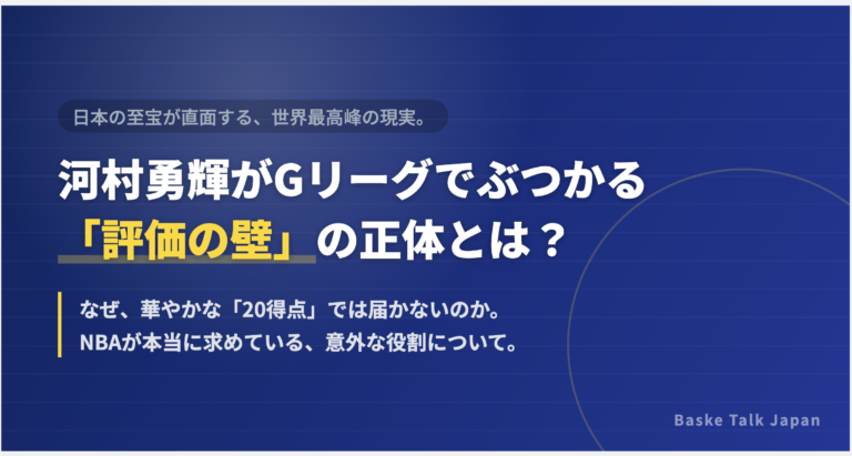 なぜ「Gリーグ20点」ではNBAに呼ばれない?河村勇輝が目指すべき“リアルな数字”と“渡邊雄太の教訓”