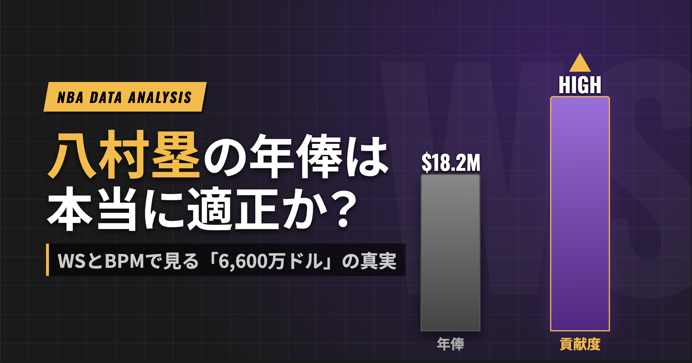 今回は、「八村塁 年俸 貢献度」の関係性を、一般的な得点数ではなく、NBAアナリストが重視する指標$WS$(Win Shares)と$BPM$(Box Plus/Minus)を用いて徹底解剖します。