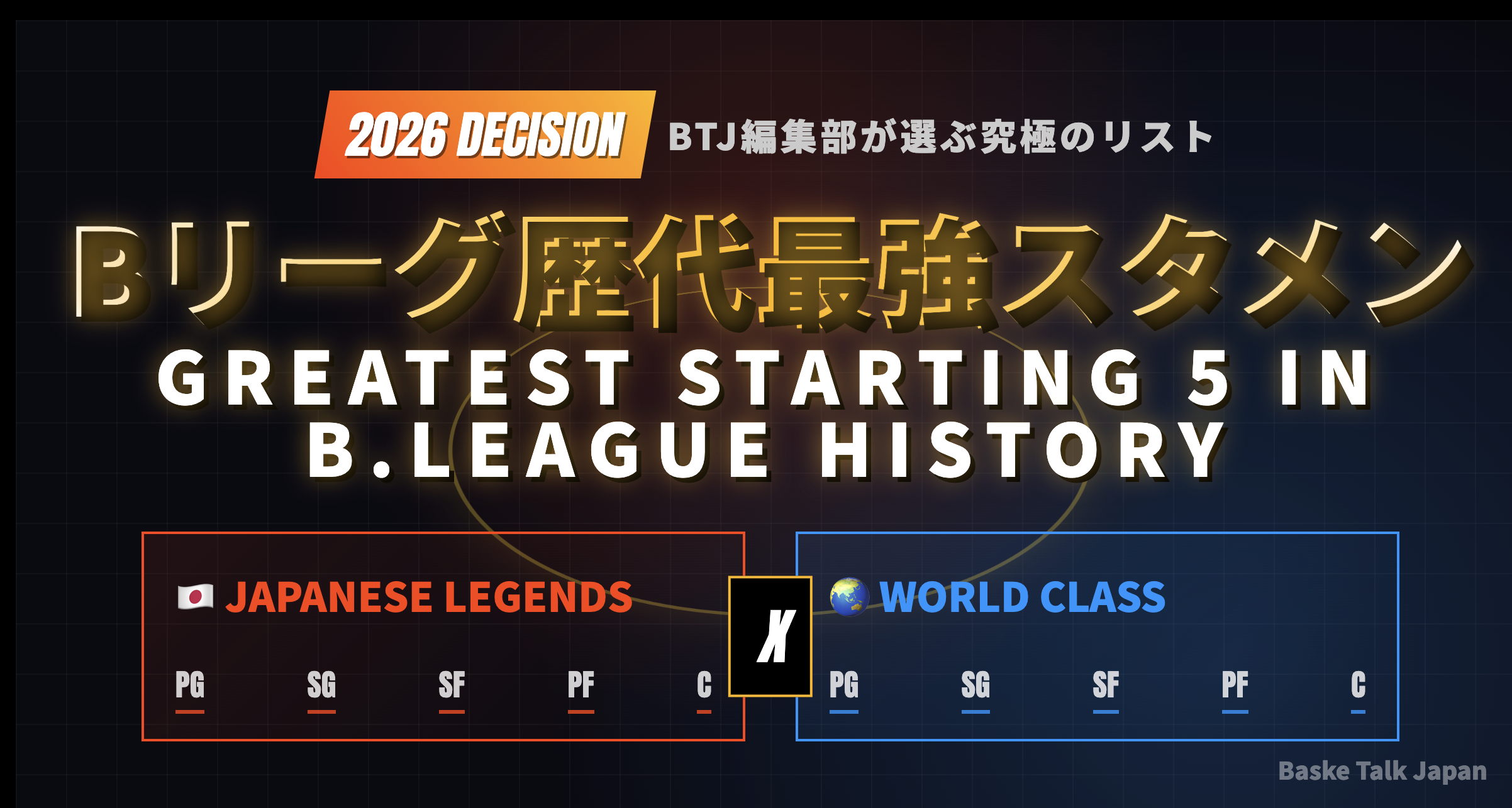 今回は、BaskeTalkJapan編集部が独断と偏見、そして膨大なデータに基づいて「Bリーグ歴代最強スタメン(2026年版)」を選定しました。